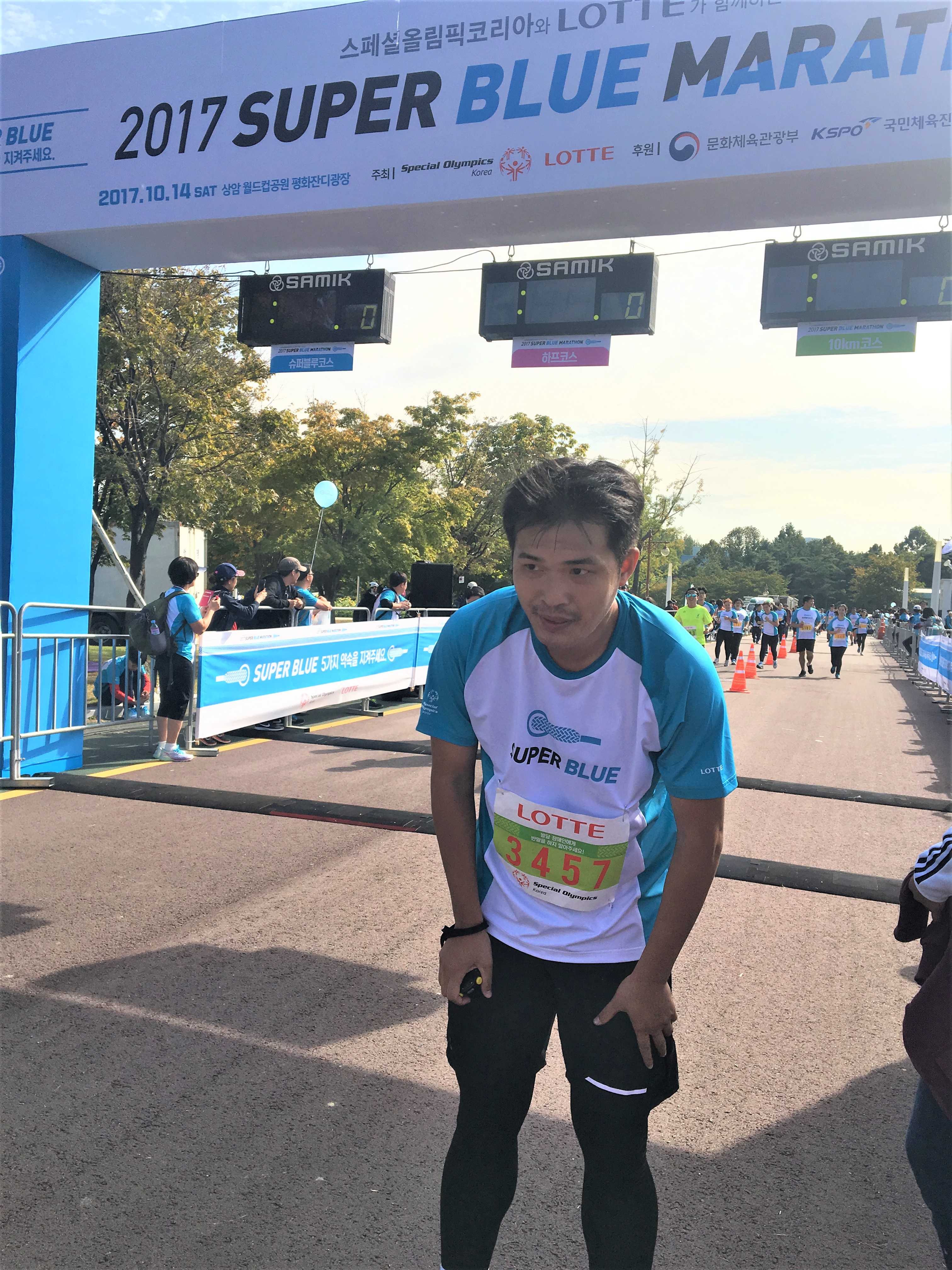 “2017 Super Blue Marathon” 由韓國特殊奧運會主辦於二零一七年十月十三日至十五日假韓國首都-首爾隆重舉行。本屆馬拉松的主題為“Blue”代表一種豁達,傳播一種“開闊”的人生態度,使殘疾人士擺脫社會歧視,從而將這樣的態度和精神傳播到世界的每一個角落;同時使人聯想到一望無際的大海, “跑”也可以成為這一種執著、一種信念,跑出自我、跑出自信、跑出別樣的精彩;為了迎合本屆大會舉辦之主題,本會派出“最喜歡跑”的三名運動員朱啟忠、廖家浩及梁瀅華參加本屆藍色馬拉松賽事。