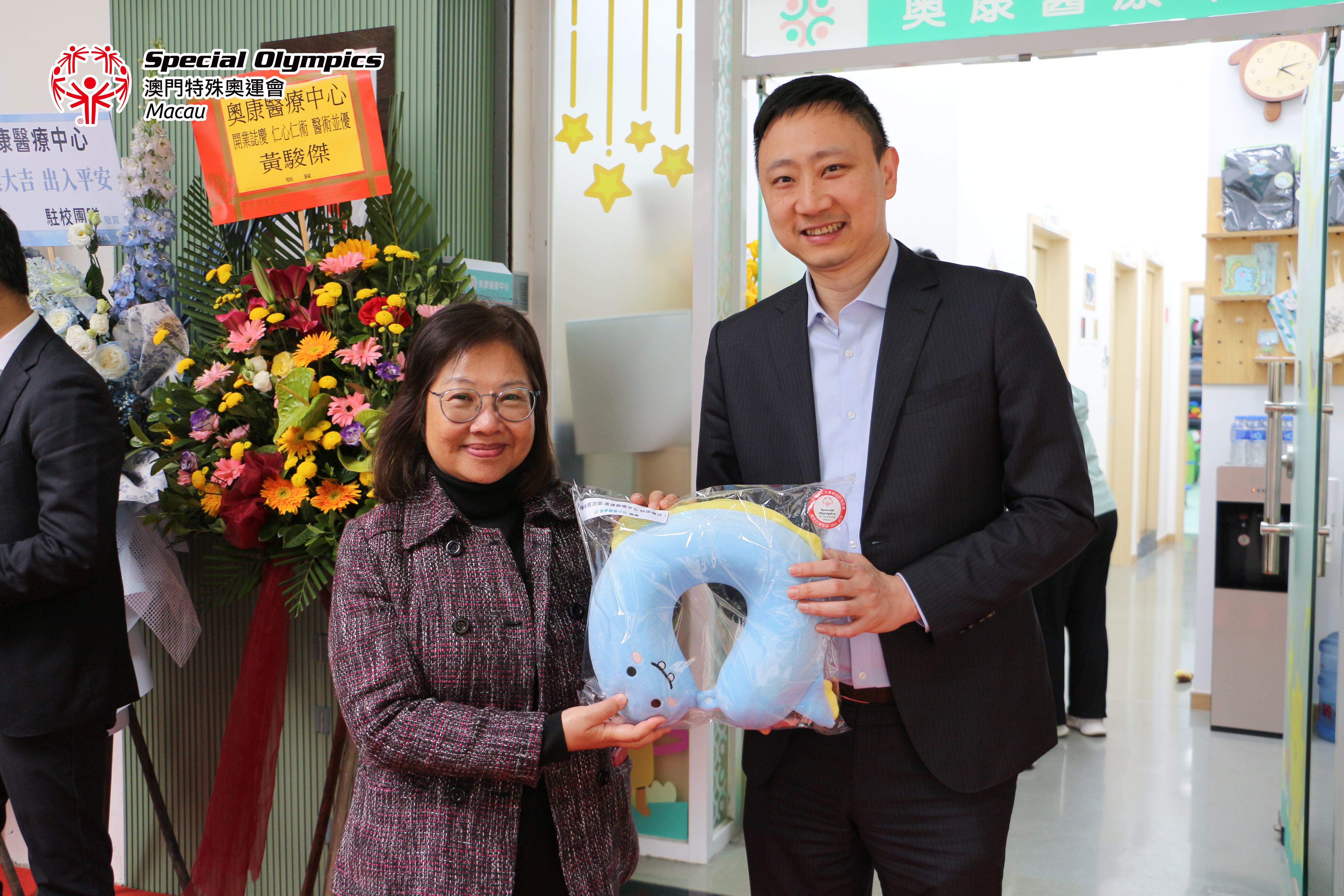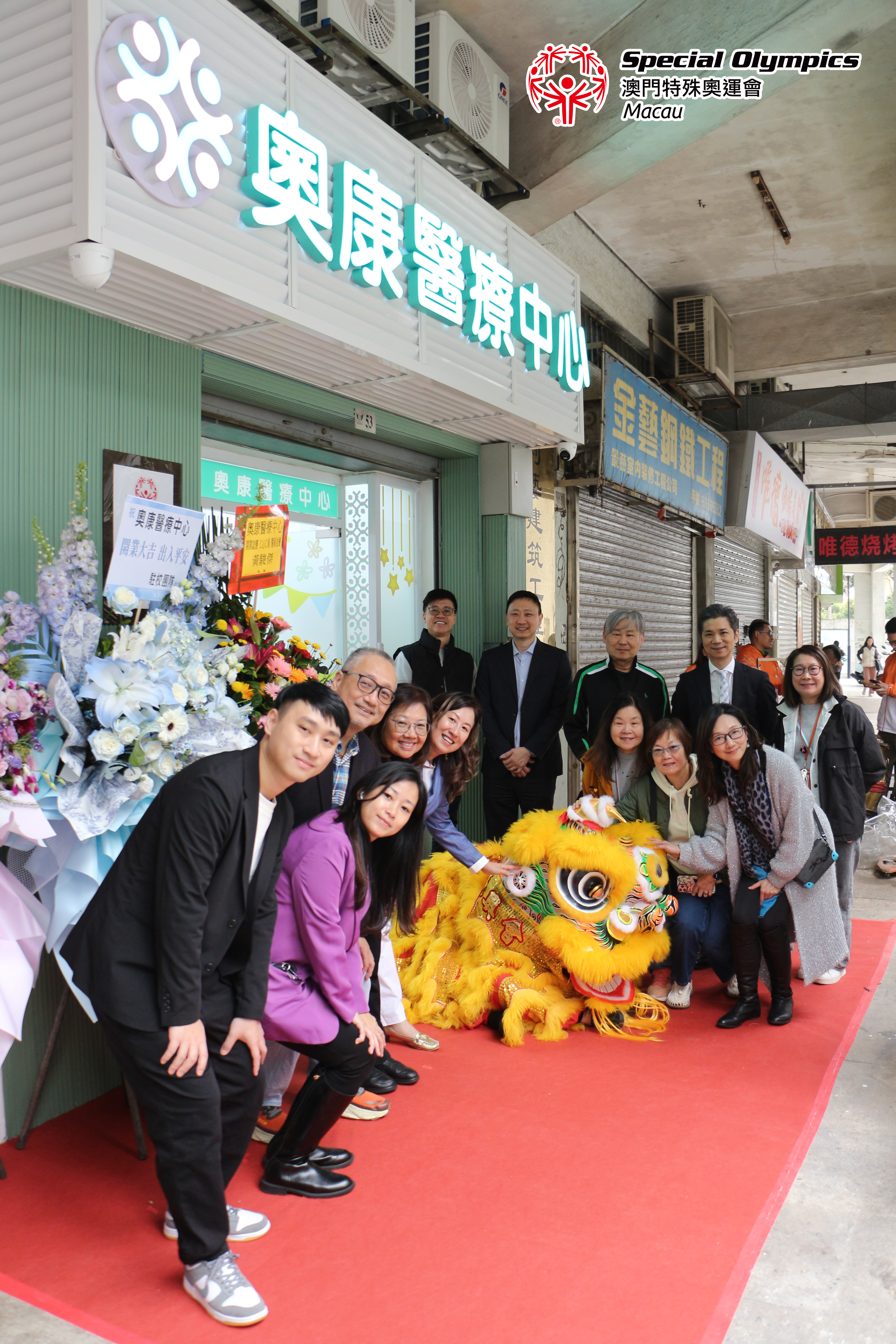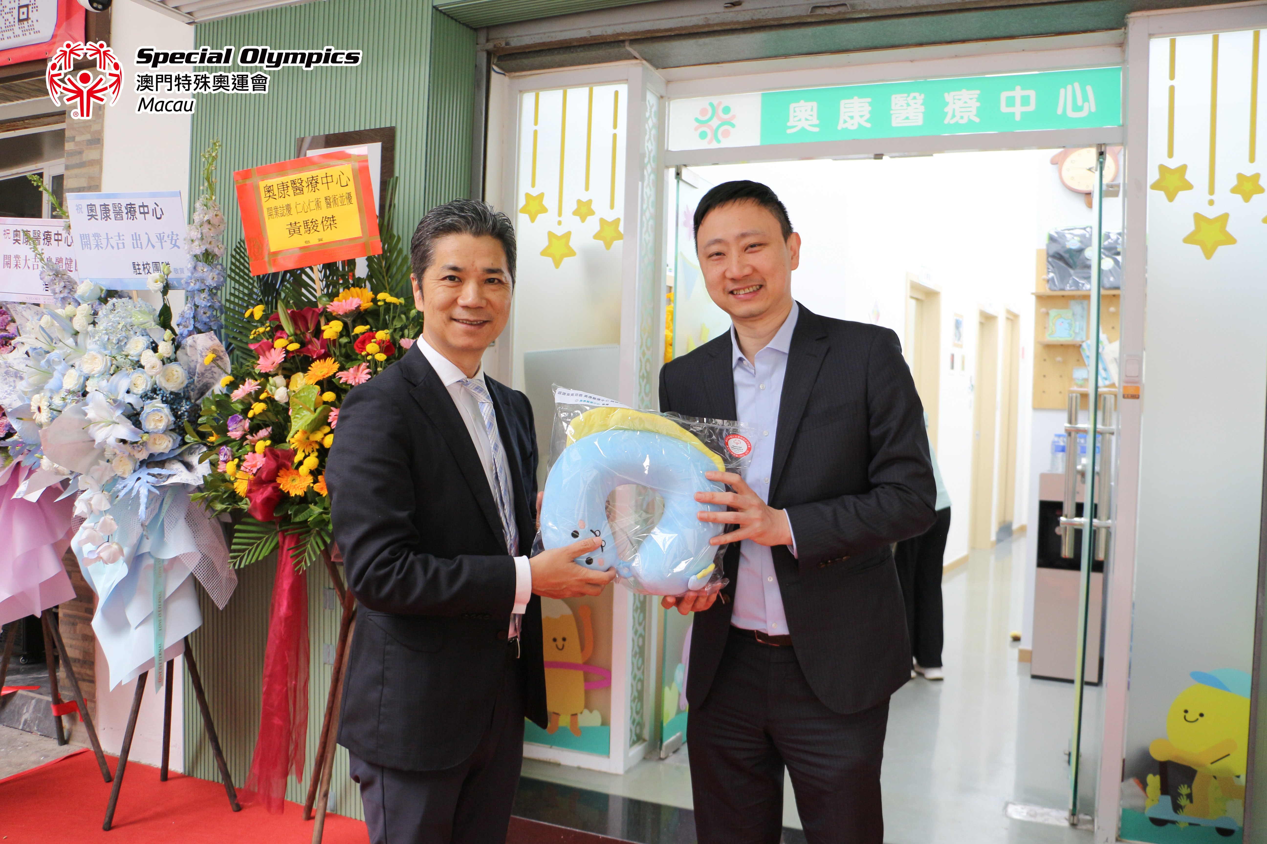 奧康醫療中心開幕禮邀請了特奧會舞獅隊表演,儀式結束後更為嘉賓送上由毅進綜合服務中心學員設計的陶塑作品製成的頸枕,寓意祝福各位嘉賓有好的休息及身體健康。