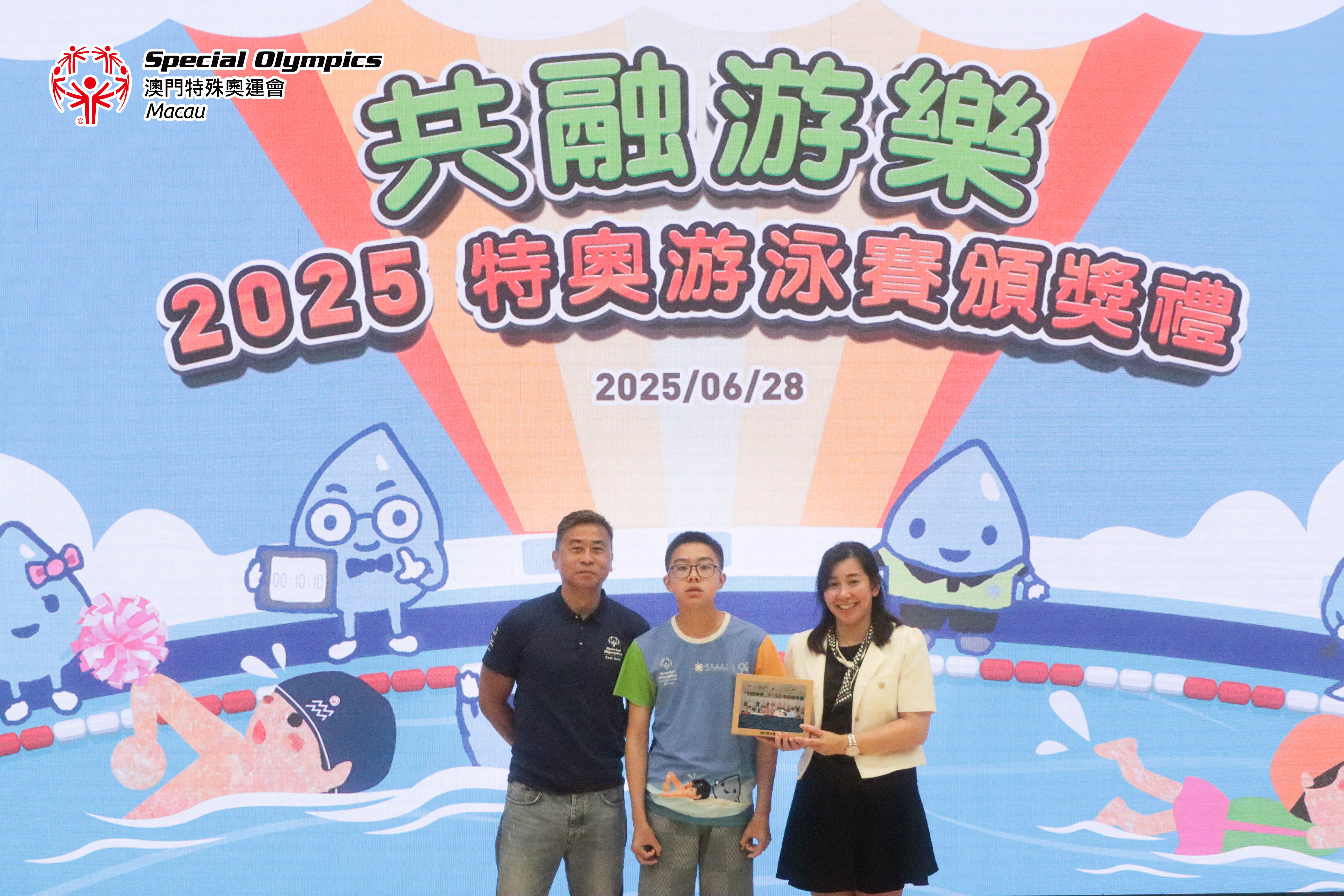 頒獎禮於室內A館舉行,設有攤位遊戲、運動體驗及由澳門自來水贊助「好茶好水」特奧共融水吧培訓班的飲品攤位等。此外,現場特別設置嘉賓與學員的共融環節,攜手完成由學員親手製作的禮物,象徵友愛與合作,進一步拉近社會各界對特殊人士的關注,傳遞尊重與支持的社會價值。