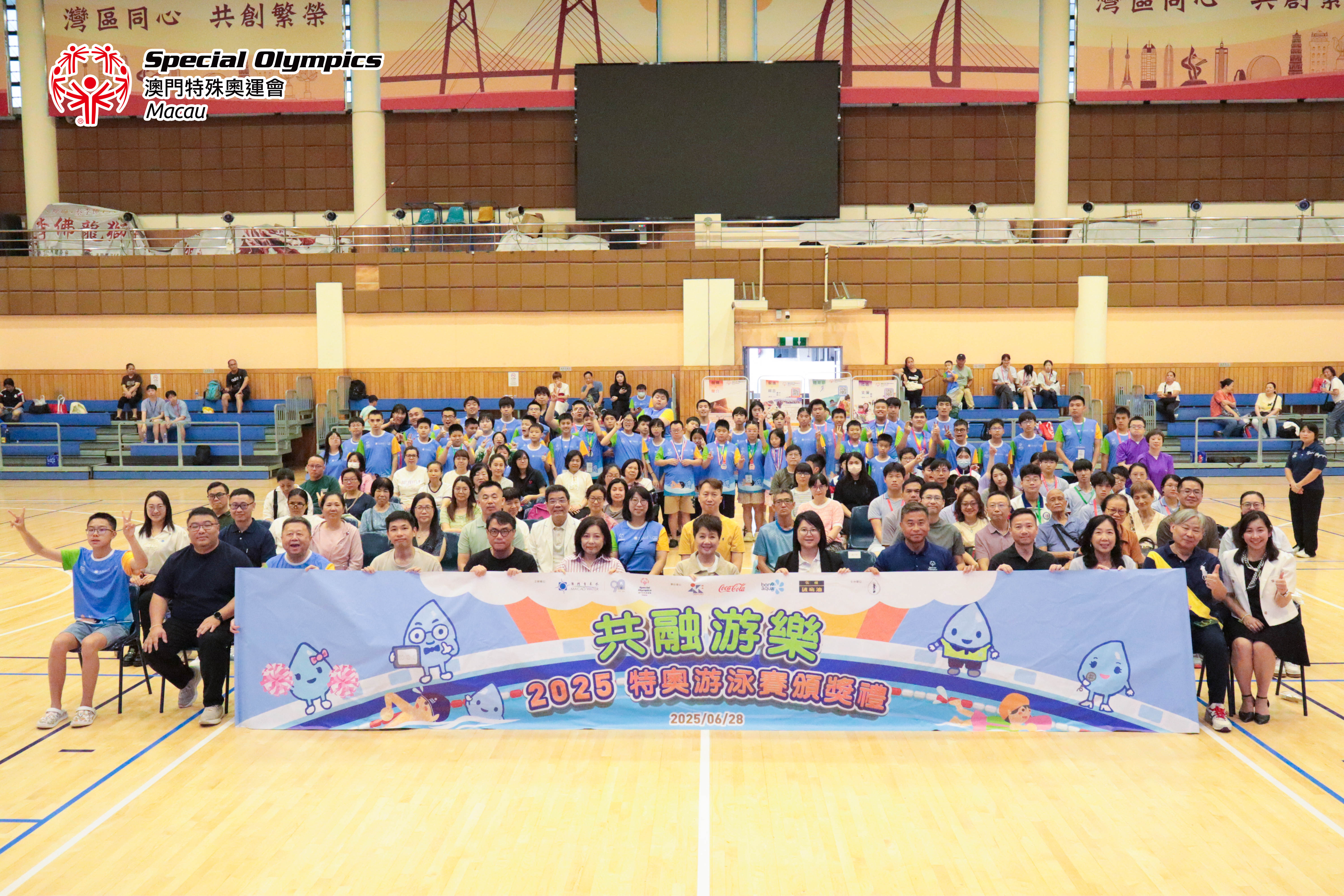 由澳門自來水股份有限公司(下稱「澳門自來水」)與澳門特殊奧運會(下稱「特奧會」)合辦的「2025特奧游泳賽」及頒獎禮,於6月28日假澳門工人體育場戶外游泳池及室內A館順利舉行。今年是雙方合作邁入第21年,以「共融游樂」為主題,吸引約200名特奧學員、有特殊教育需要人士、家長、義工及嘉賓參與。活動不僅為學員提供展示泳技的舞台,更致力於推廣傷健共融的社會價值。