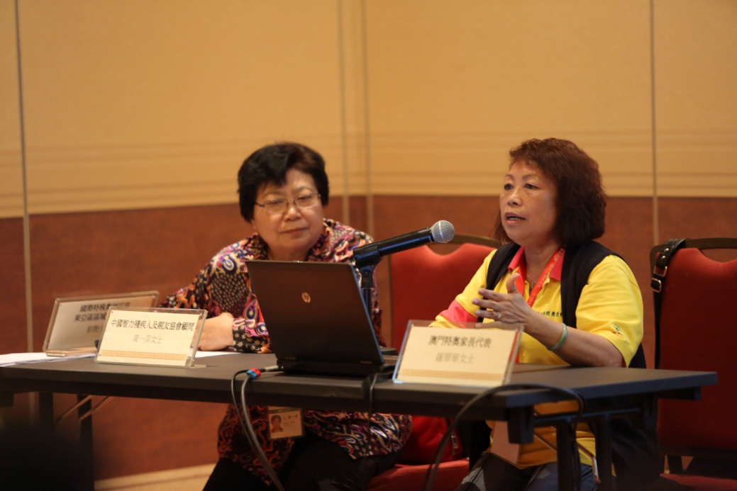 亞太區特殊奧運會青年領袖Cherish分享了其他地方如:印尼、菲律賓等地方推動青少年和智障人士互動,籍此減少隔閡,消除歧視。