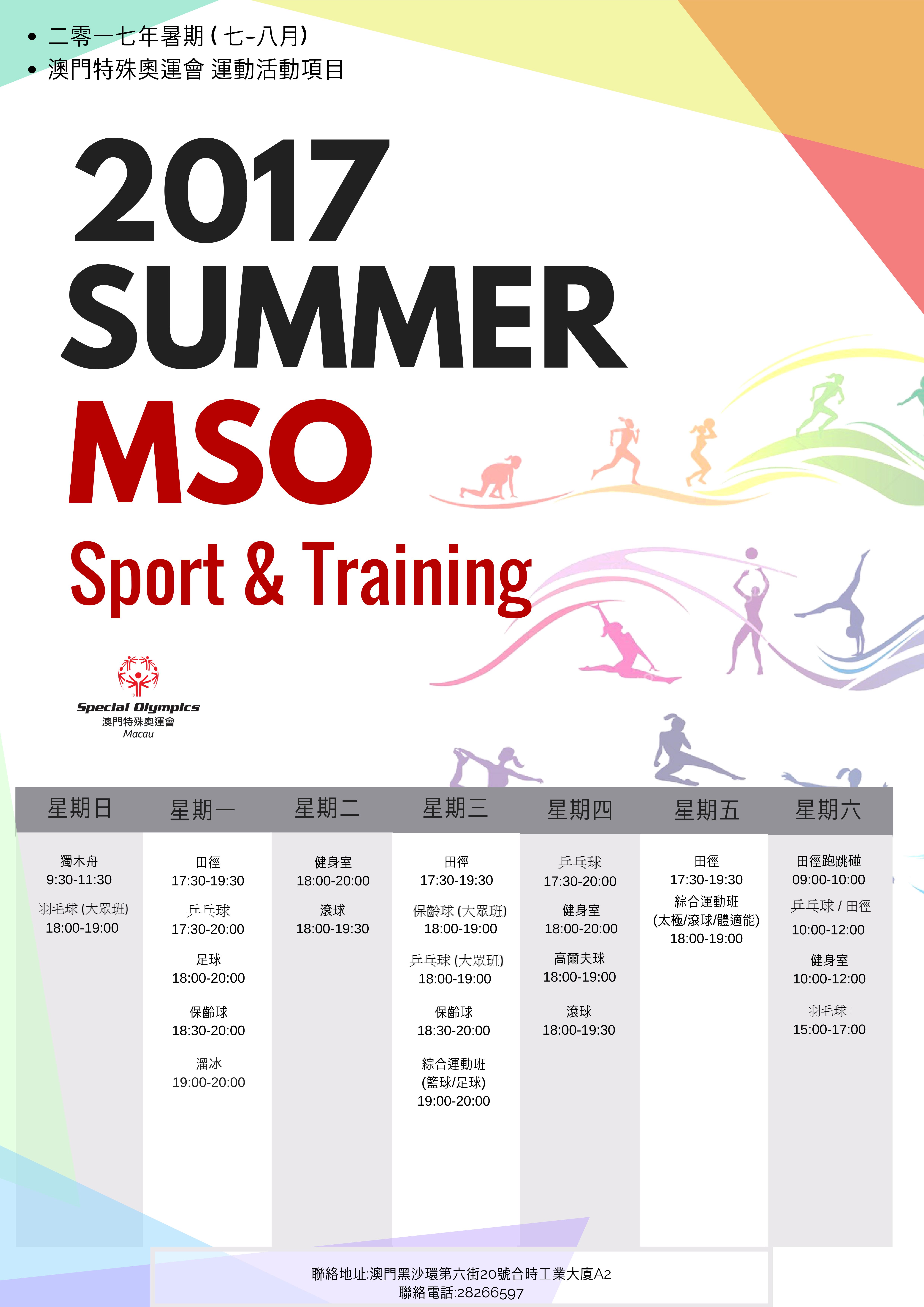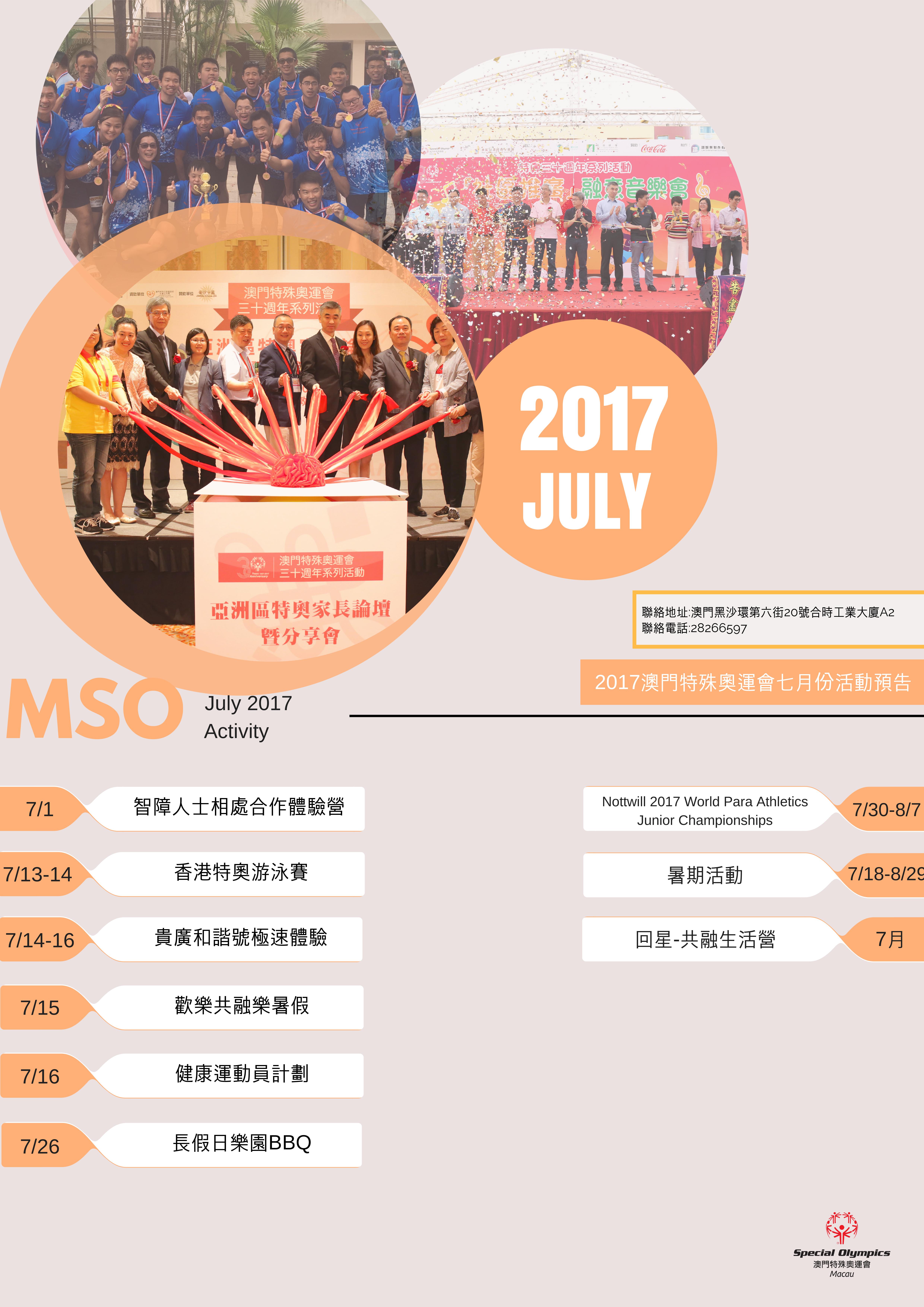 2017年7月份澳門特殊奧運會活動預告及體育恆常訓練