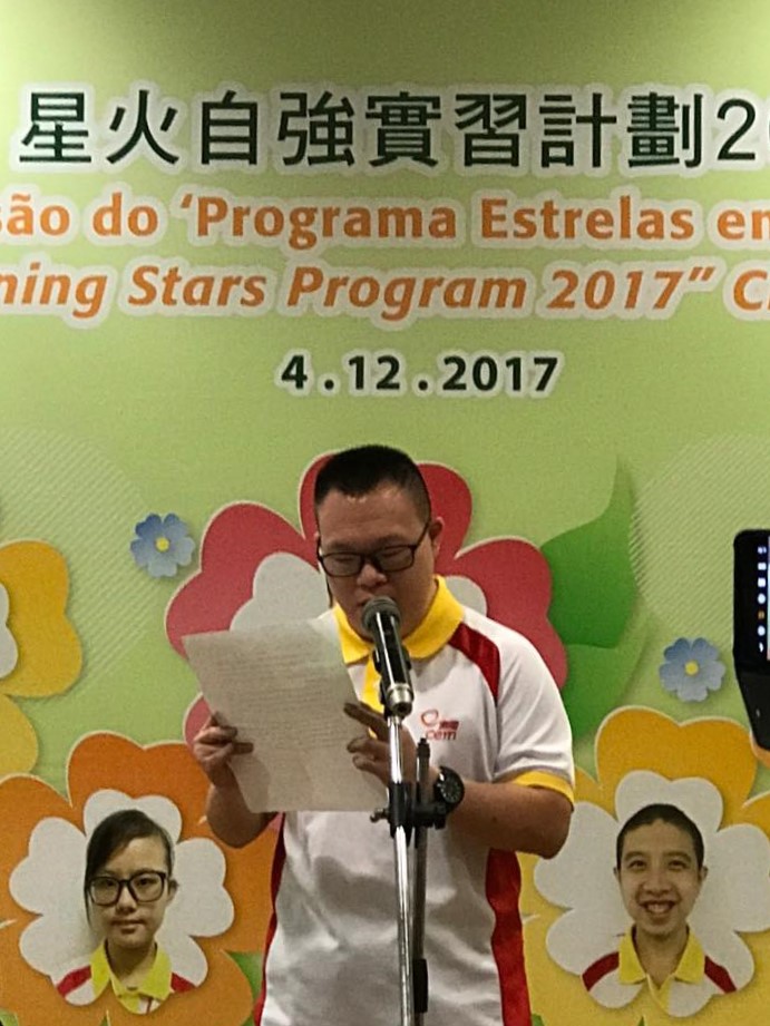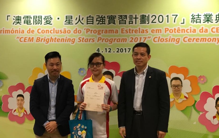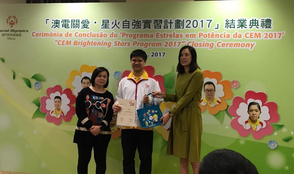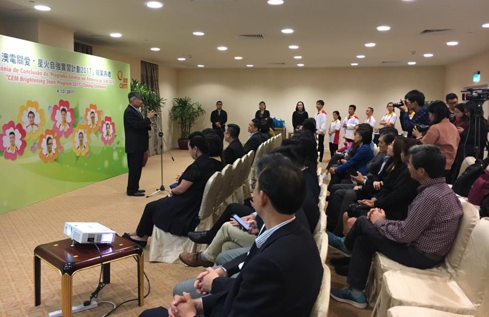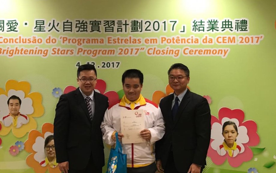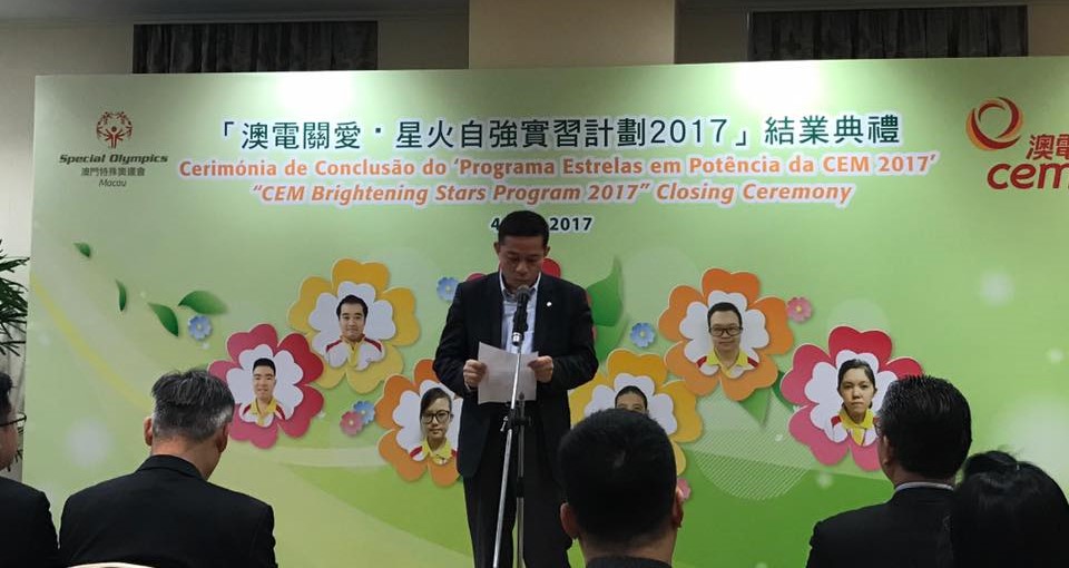 澳門電力股份有限公司與澳門特殊奧運會合辦的“澳電關愛 · 星火自強”實習計劃結業禮於12月4日舉行,七名實習生於澳電完成為期三個月的實習。由中聯辦社工部副處長孫志君、勞工事務局副局長陳元童、教青局教育心理輔導暨特殊教育中心代主任馮紫華、社工局代表高級技術員陸麗瑗、立法議員宋碧琪、電力客戶諮詢委員會委員、特奧會執行總監蕭宇康及特奧會秘書長羅凱敏等向實習生頒發結業證書。