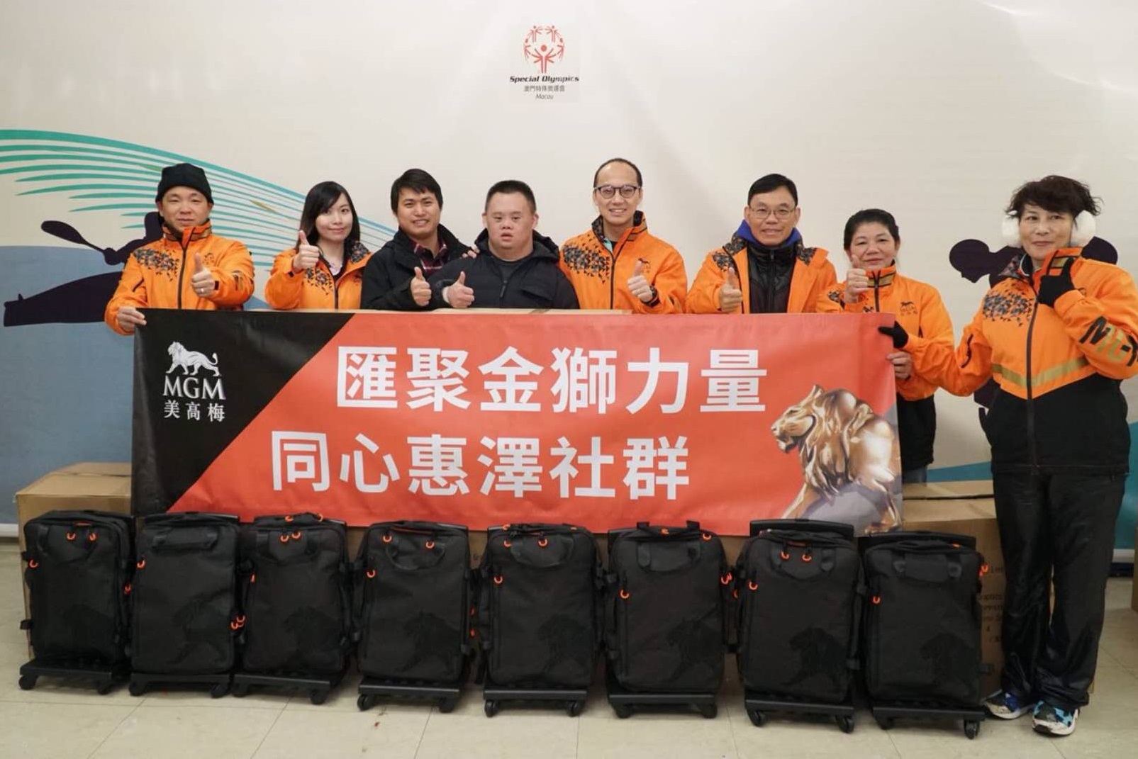 於2018年2月1日,澳門美高梅由代表林先生帶領義工隊一眾成員,親訪澳門特殊奧運會送贈136份特製的新年禮品,率先為智障人士送上春節的關懷,澳門特殊奧運會派出代表及智障人士接受。期間澳門美高梅義工隊組員態度親切,並親身教授智障人士有關禮品(特製背包)的各種使用方法,並為智障人士帶上背包調節背帶長度,表現細心及關愛。