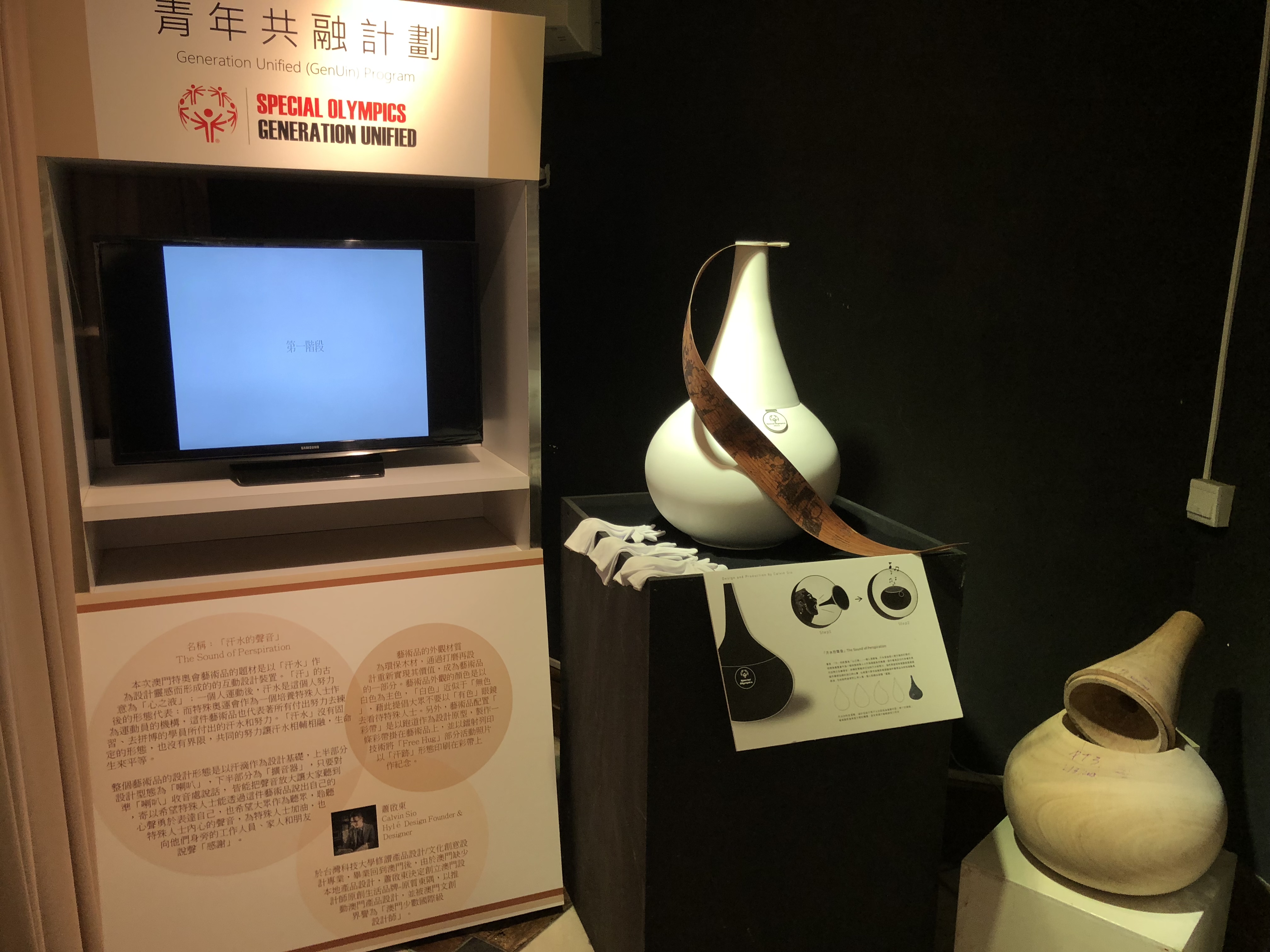 本會邀請了被澳門文創界譽為「澳門少數國際級設計師」_蕭啟東 Hyle design-原質東隅來與特奧聯乘設計別具意義的藝術品,並在開幕中分享其創作理念。