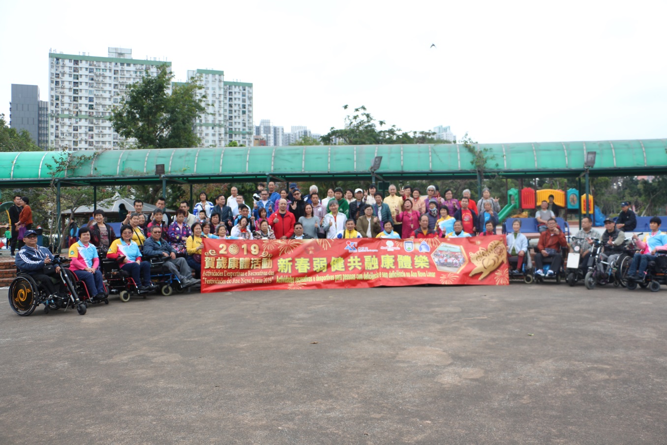 由體育局主辨,澳門特殊奧運會協辦,新春弱健共融康體樂2月17日在紀念孫中山市政公園舉行,一眾殘疾人士與家人共同參與各項康體攤位活動,共有約六百人參與,場面熱鬧。現場設有多個康體攤位遊戲及表演,讓殘疾人士與家人共同參與,一展身手及舒展筋骨,共同度過愉快的下午,場面溫馨熱鬧。另外本會更與利民會、扶康會進行共融足球友誼賽,此次活動希望為平日較少直接參與各項運動的弱能及殘疾人士提供戶外活動的機會,更以此作為弱健人士溝通及交流的平台,一同玩樂。現場氣氛歡欣,大家不分彼此,樂也融融。