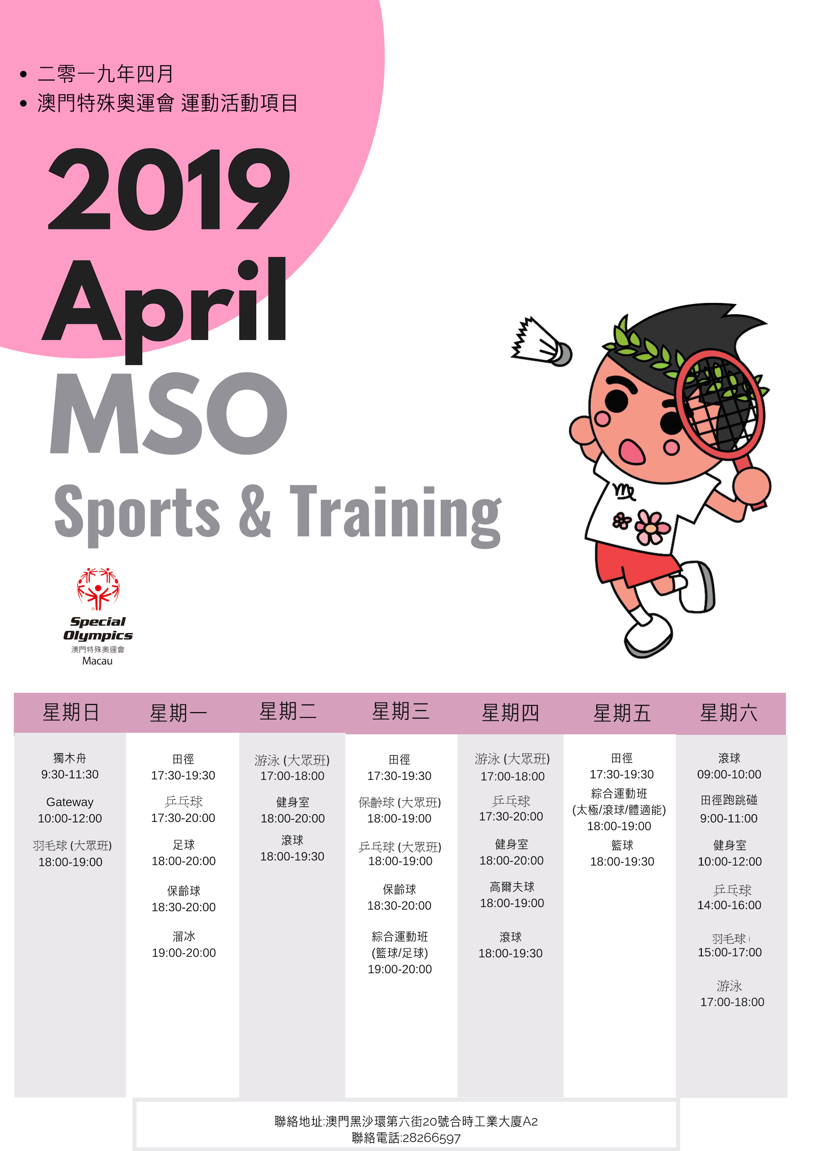 4月特奧活動預告及體育訓練