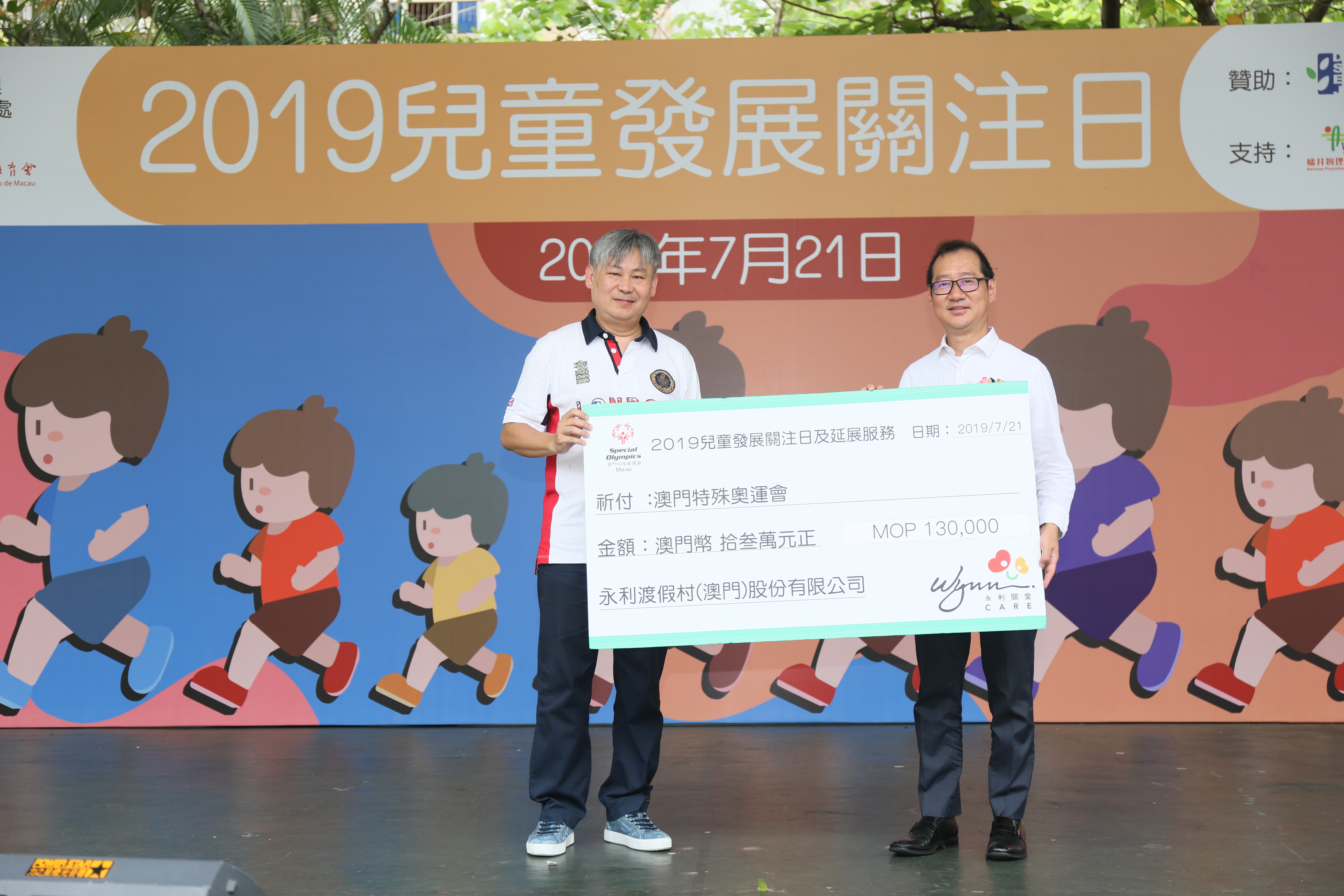 由澳門特殊奧運會主辦的大型推廣活動「2019兒童發展關注日」,將於7月21日假祐漢公園順利舉行。是次活動獲教青局資助,中華教育會及天主教學校聯會協辦,並獲得永利渡假村(澳門)股份有限公司關愛贊助拾叁萬元正,關注日活動亦得到永利義工隊以及浸信學校學生義工的義工們協助。開幕式於當天下午二時於祐漢公園舉行,由特奧會施達明副理事長、及一眾嘉賓(見列名稱及職銜)主禮。