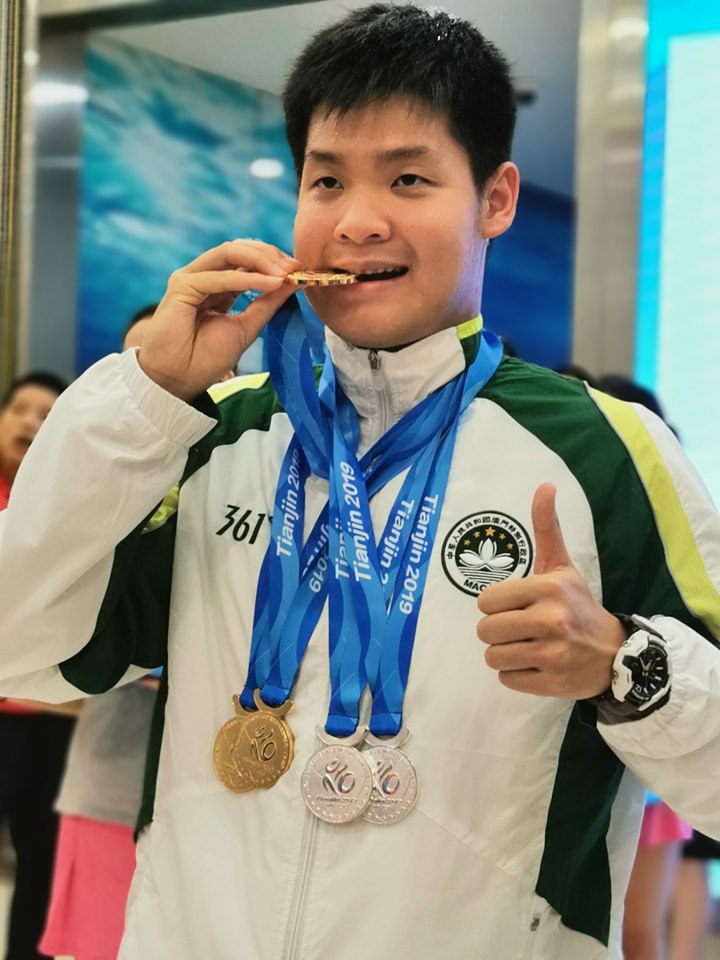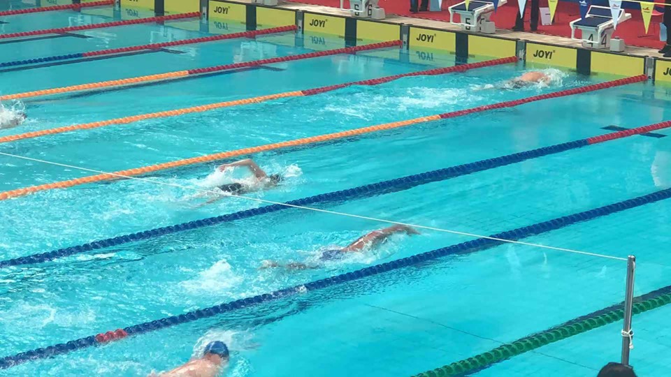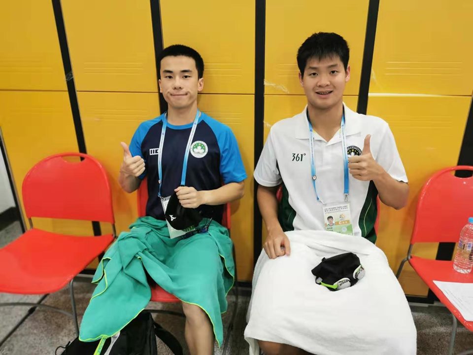 下午的賽事可説是激戰連場,我隊泳將陳裕嘉與蘇梓毅先出戰100米自由泳決賽,戰鼓聲一響兩名運動員如戰將上身,裕嘉首發帶領著過去兩場對壘彼此各取一勝的老對手天津省選手,在前50米兩人爭持激烈至轉身後裕嘉以較佳的轉池技術取得半肘優勢,但天津選手力追下在衝㸃壓板一刻,全場屏息呼吸聚焦誰先觸壁搶首,最終我隊陳裕嘉僅以百分之十一秒的毫微差距先觸壁,以58秒35成功為澳隊奪下這面金牌。另一方面, 我隊蘇梓毅亦憑淩厲後勁在最後20米由第七位連續搶過兩人進據第五位,並以1分11秒拿下第五名。