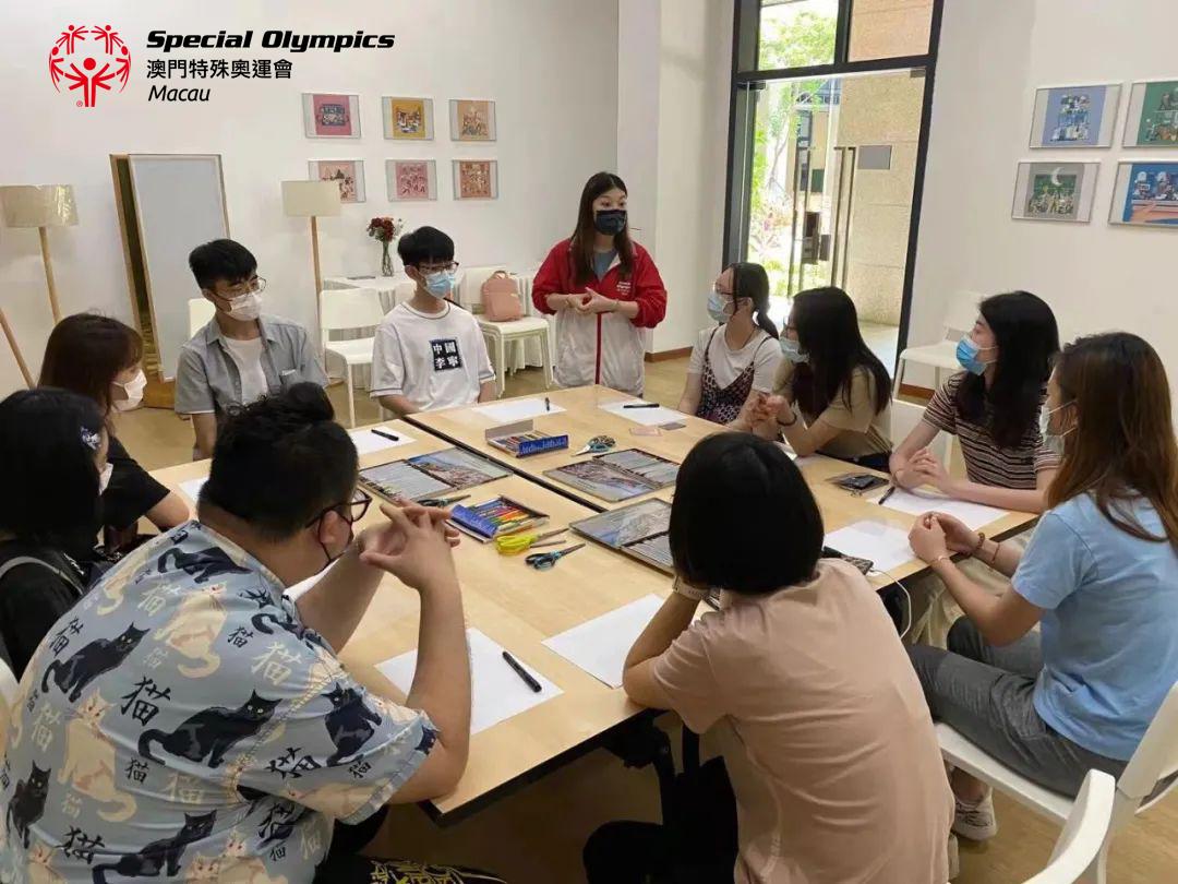 澳大學生義工與特奧學員於攤位前合照